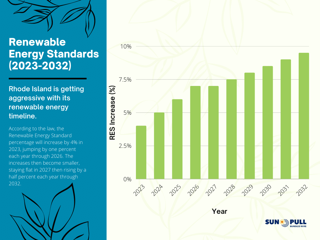 According to the law, the Renewable Energy Standard percentage will increase by 4% in 2023, jumping by one percent annually through 2026. The increases then become smaller, staying flat in 2027 and then rising by a half percent each year through 2032.